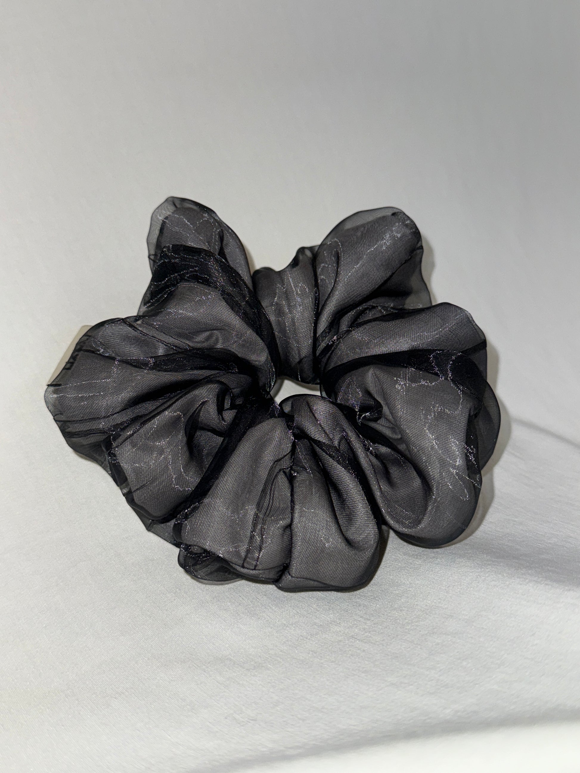 Double-layered scrunchie in dark grey colour.